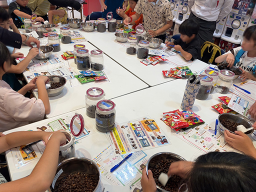 子どもたちは、自分だけのオリジナルブレンドコーヒーづくりを大変喜んでいただき、それぞれの保護者の方へのプレゼントとしてお持ち帰りいただきました。
