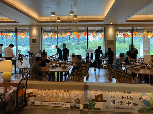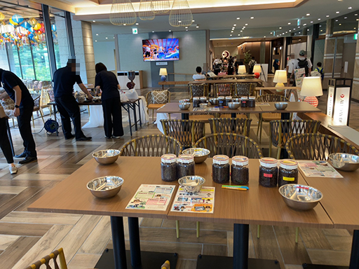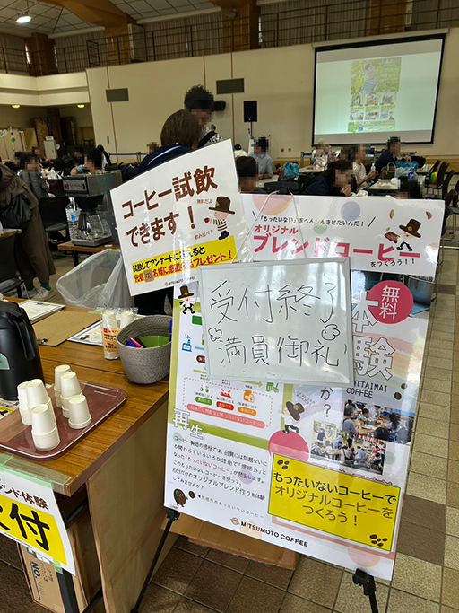 会場では、コーヒー製造時に出る食品ロスについて知っていただきながら、約400人の方々にコーヒーブレンドを楽しんでいただくことができました。