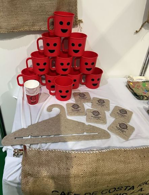 当社は主に「コーヒーの生産国への学校給食の支援活動」「食品ロス削減活動」等のSDGs関連活動の紹介と、麻袋を使用したバッグやコースター・コーヒーの販売も行い、企業及びSDGs活動の認知向上・営業活動・参加者や他の出展者との情報交換の場として、有意義な参加となりました。