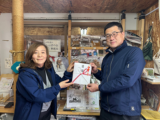 2025年11月11(火)、認定NPO法人HOKKAIDOしっぽの会に寄付を行いました。この寄付は中島製茶株式会社様とともに、当社の社会貢献型商品「三本珈琲オリジナルブレンド」の売上の一部を用いて2021年から継続して行っており、今回で5回目となります。寄付金はしっぽの会の活動費用として活用されます。